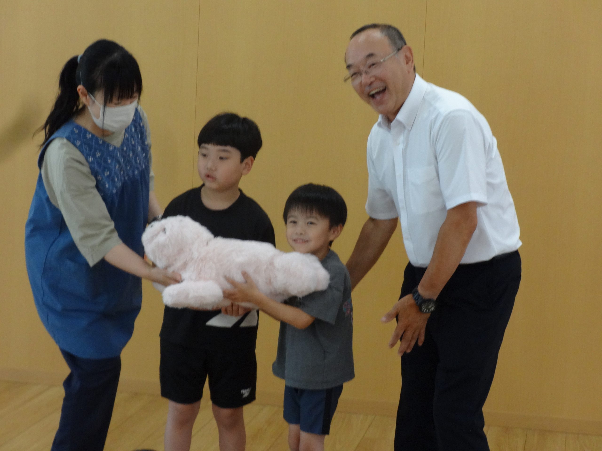「しんくみピーターパンカード」利用による基金等でわらび学園にアザラシ型ロボット「パロ」を贈りました。